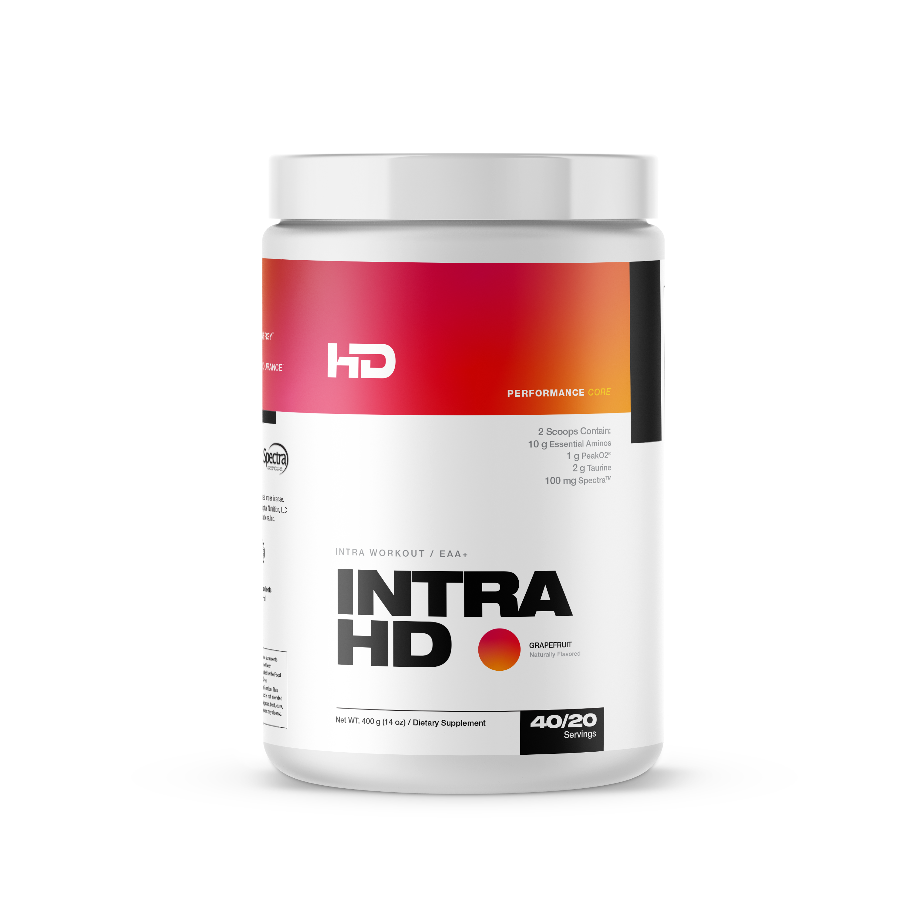 IntraHD contains 14.1G (per 2 scoops) of the highest quality (trademarked) branded ingredients.